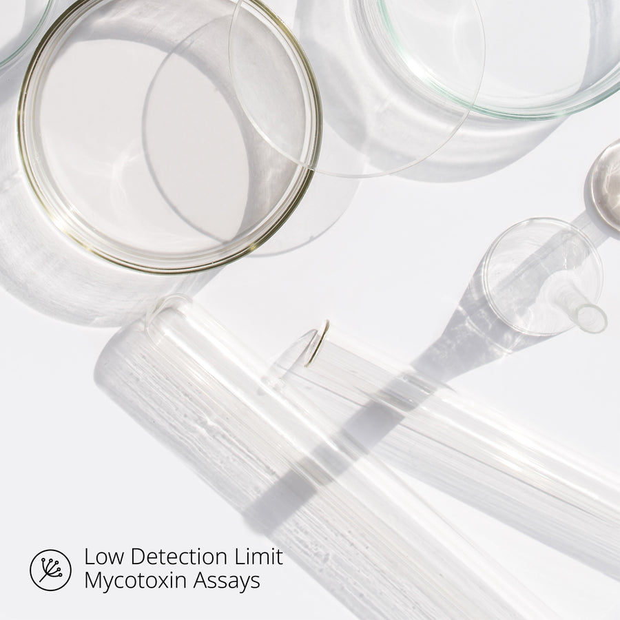 Quantitative laboratory analysis using validated HPLC methodology for the detection of Zearalenone at a low detection limit of 2 ppb.