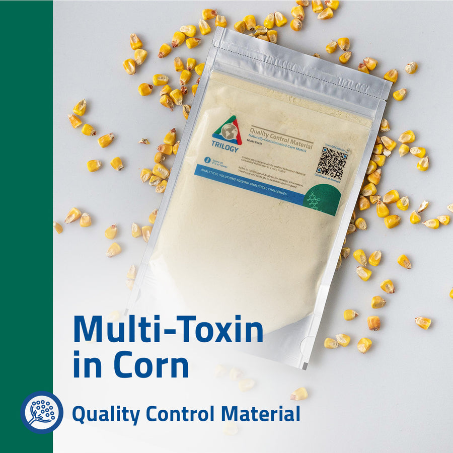 A naturally contaminated Quality Control Material containing Aflatoxin B1/B2/G1/G2, Deoxynivalenol, Fumonisin B1/B2/B3, Ochratoxin A, T-2 Toxin, HT-2 Toxin and Zearalenone in a corn matrix.