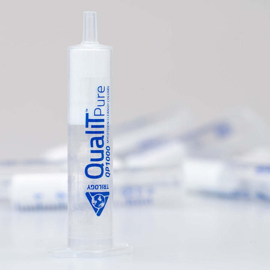Trilogy's QualiT Pure Multi-ergot alkaloid cleanup column contains a proprietary mixture of silica layered between cellulose and polyethylene frits and contained within a 6 mL polypropylene syringe barrel (plunger included). The unique packing material retains large molecules, and more importantly, contains several active sites to adsorb various interfering compounds. The QualiT Pure multi-ergot alkaloid cleanup column allows for multiple analytes to be screened with the use of a single column. The QualiT Pure Multi-ergot alkaloid cleanup column is optimized for Ergocornine, Ergocorninine, Ergocristine, Ergocristinine, Ergocryptine, Ergocryptinine, Ergometrinine, Ergosine, Ergosinine, Ergotamine, Ergotaminine, Ergovaline and Dihydroergocristine.